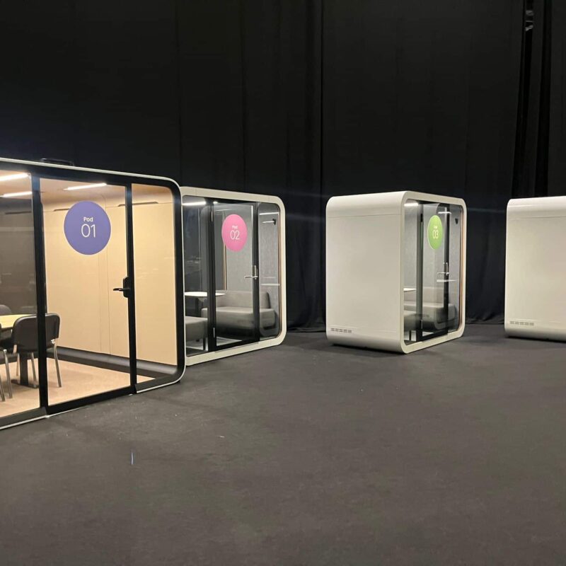 Silen pods are the perfect choice for event and exhibition rentals because they offer flexibility, mobility, and customization. With castors for easy relocation and customisable branding options, they fit seamlessly into any event layout. Their built-in features like LED lighting, air circulation with occupancy sensors, and charging ports create a comfortable, self-sufficient space for attendees. The sturdy design and quiet environment make them ideal for private calls or meetings, enhancing both functionality and the overall experience at any event.
