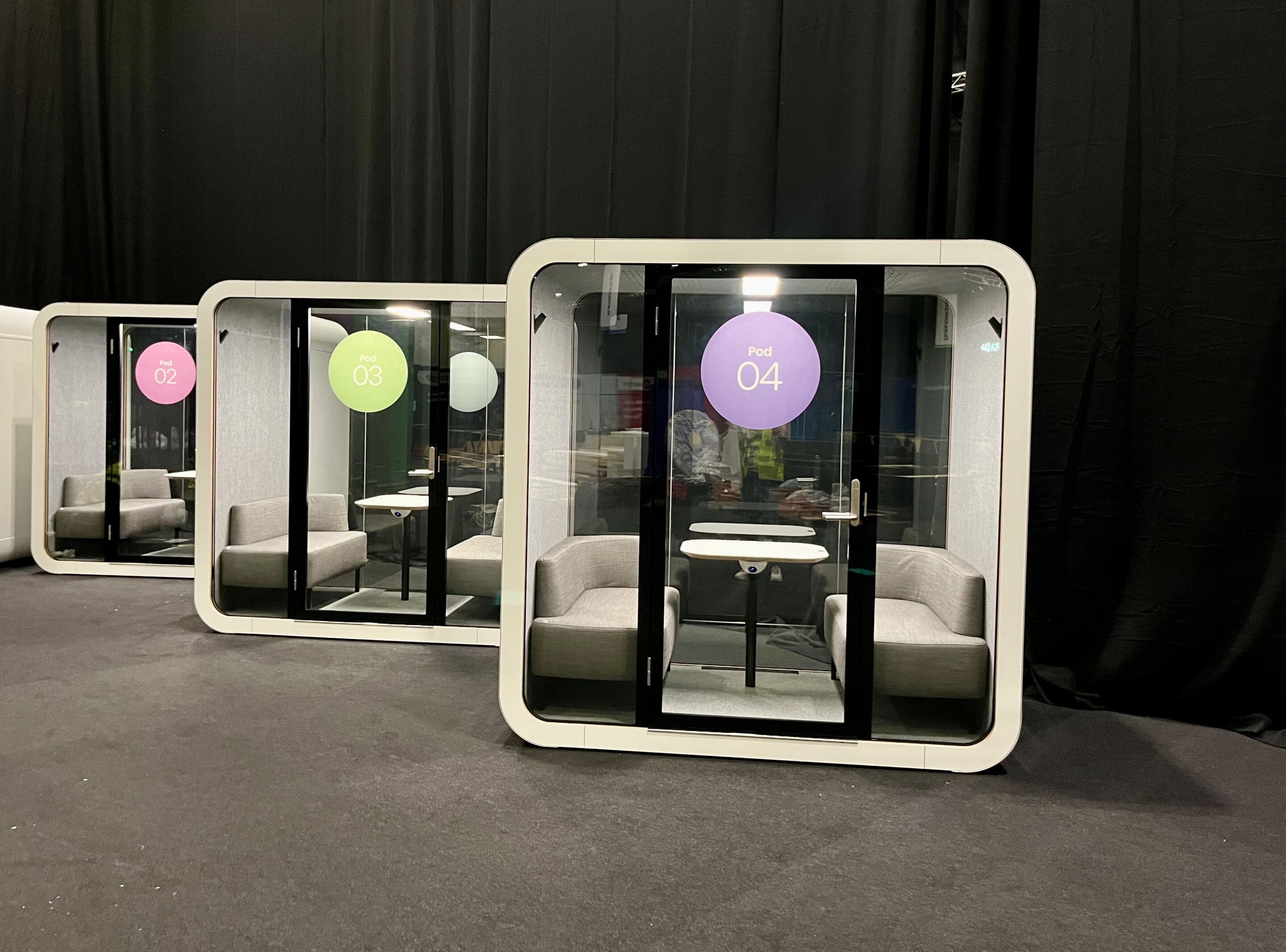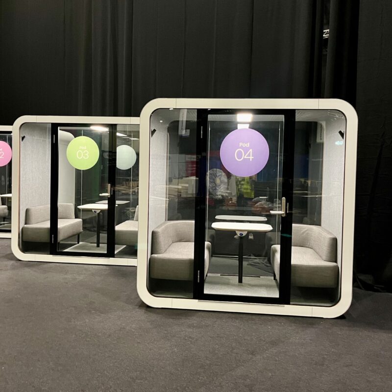Completely customisable, each pod can be printed with company branding at an extra cost. Please contact us with your ideas, Exhibition locations, timings and Pod requirements for an accurate quote.