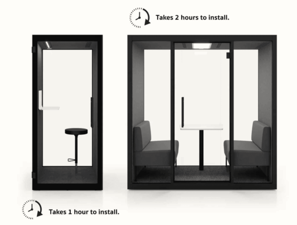 From delivery to complete installation, our pods are set up quickly and seamlessly, making them an ideal solution for businesses seeking rapid implementation of private meeting spaces.